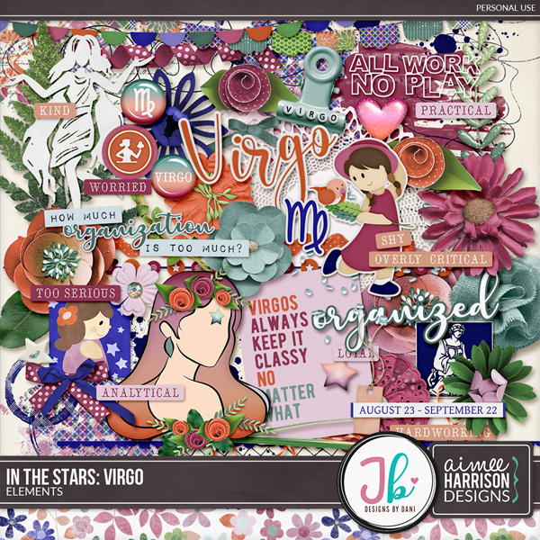 This beautiful Mega Kit is dear to my heart because I am a Virgo! I love the colors of this and how it celebrates much of my personality! So much fun!