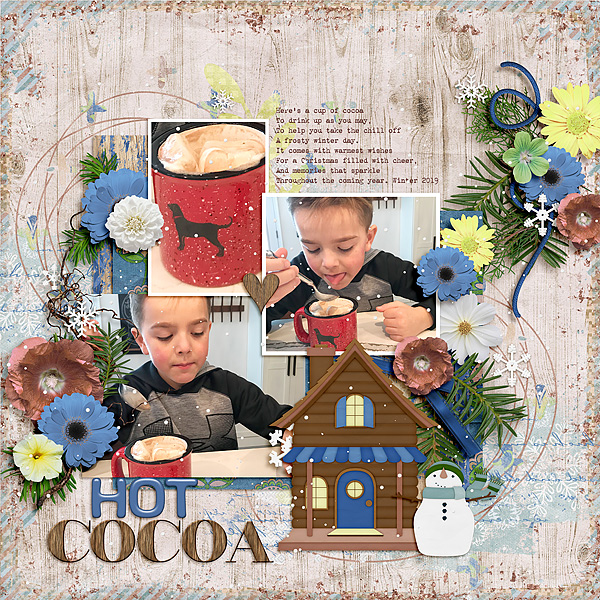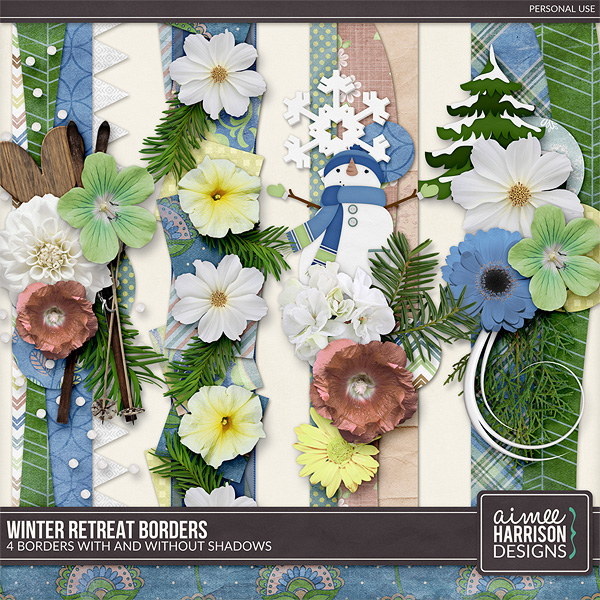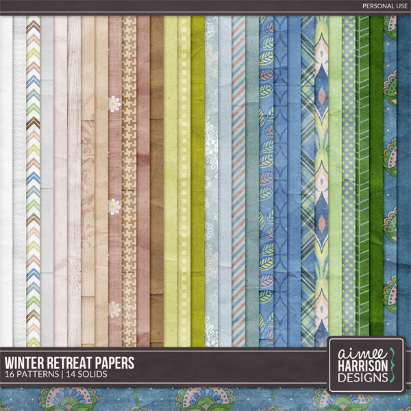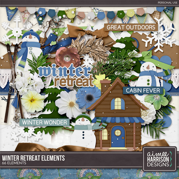 Winter Retreat is perfect to scrap your cabin photos, outdoor winter photos and fireside photos. It reminds me of when I was staying in a cabin on Mount Hood in Oregon with its coziness and fireside memories.