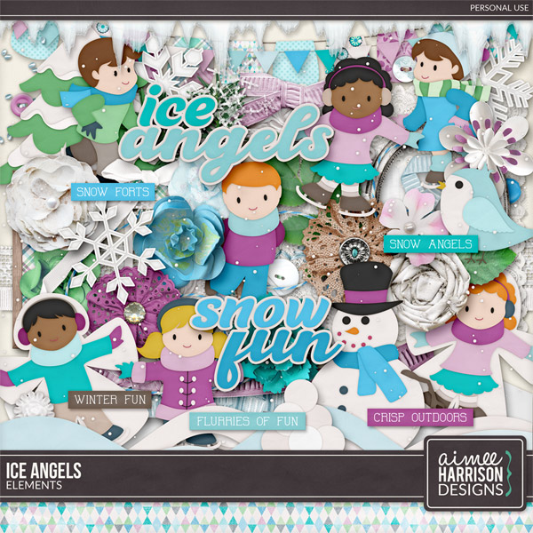 This kit is full of winter fun showcasing ice skating and snow angels! I love the adorable kids in here and it is perfect for outdoor activities in the winter!