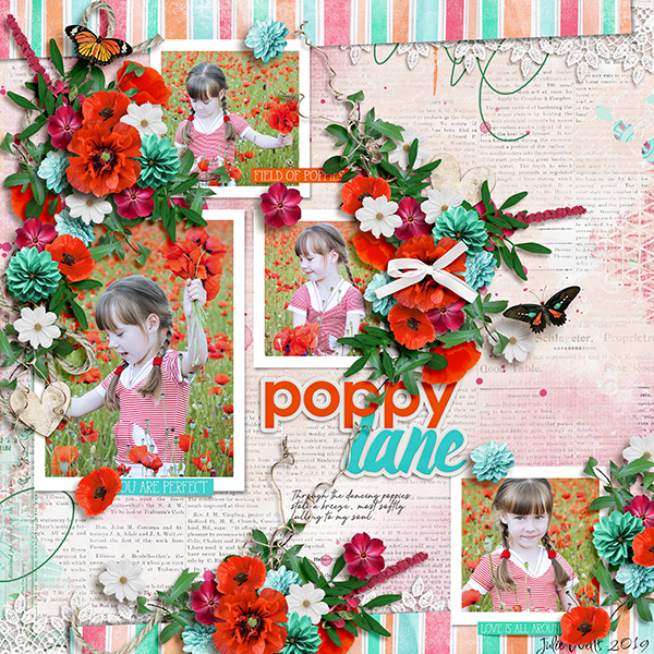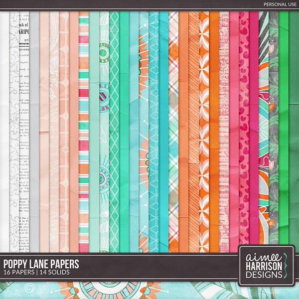 Poppy Lane celebrates the beautiful poppies we get here in the summertime! The colors of this kit just brighten my day and I love aqua and red-orange!
