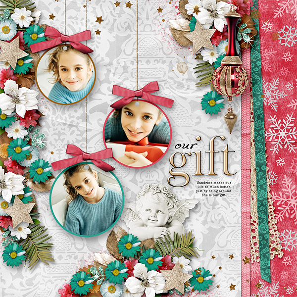 Celebrate the spirt of Christmas with this beautiful kit! It is perfect for the holidays and scrapping with your Christmas Eve or Christmas Day photos!