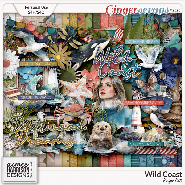 Embrace the rugged beauty of the ocean with Wild Coast, a digital scrapbook collection inspired by the untamed shores of Oregon, Washington, and Scotland.